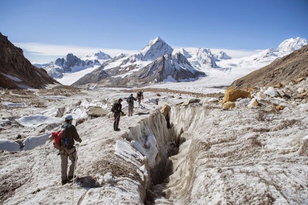 On the snow slope again, practise what you learned in yesterday's class and learn how to move roped up in a group and how to navigate a glacial field. Practice belaying and team arrest as well.